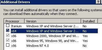 Windows 7 x64 and printers hosted on Windows server 2003